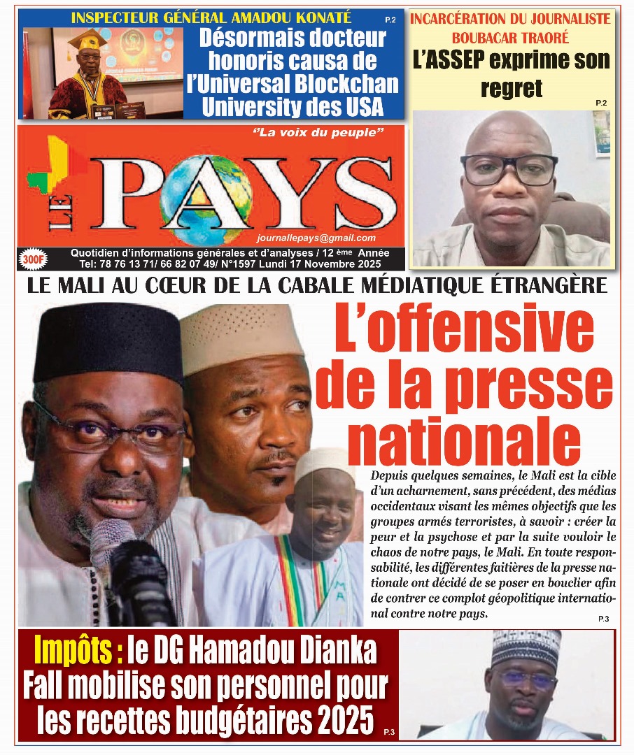 Ce lundi 10 novembre 2025, le président de l’Association des Éditeurs de Presse Privée (ASSEP), Boubacar Yalkoué,...